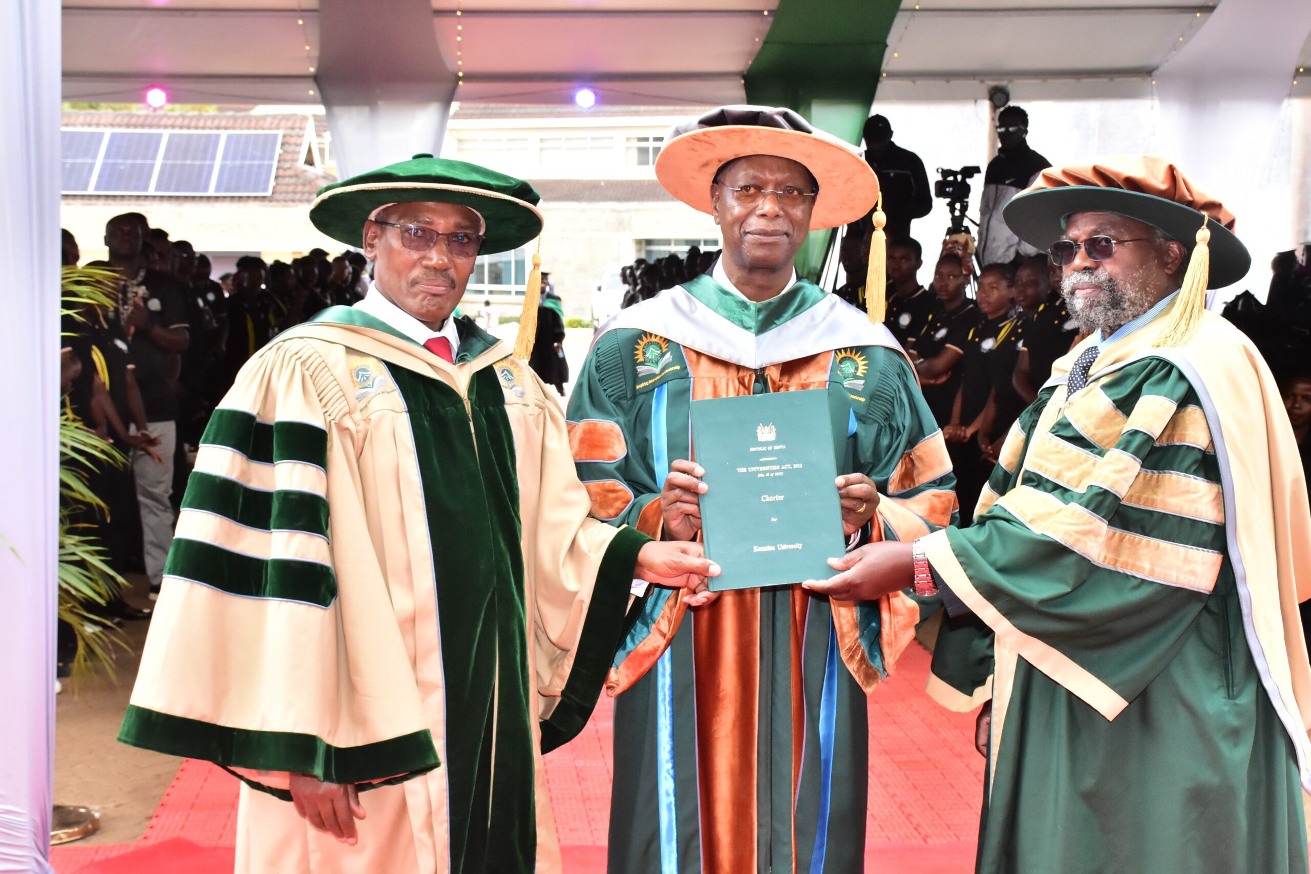 The ceremony’s introduction was conducted by the University Council Chairman, Prof. Joseph Mailutha, who read the Chancellor’s glorious profile. Another distinctive highlight of the event was the robing of the Chancellor. He was escorted in style by the Vice Chancellor, the University Council Chairman, and Dr. Everlyn Anduvare, who also conducted the robing.