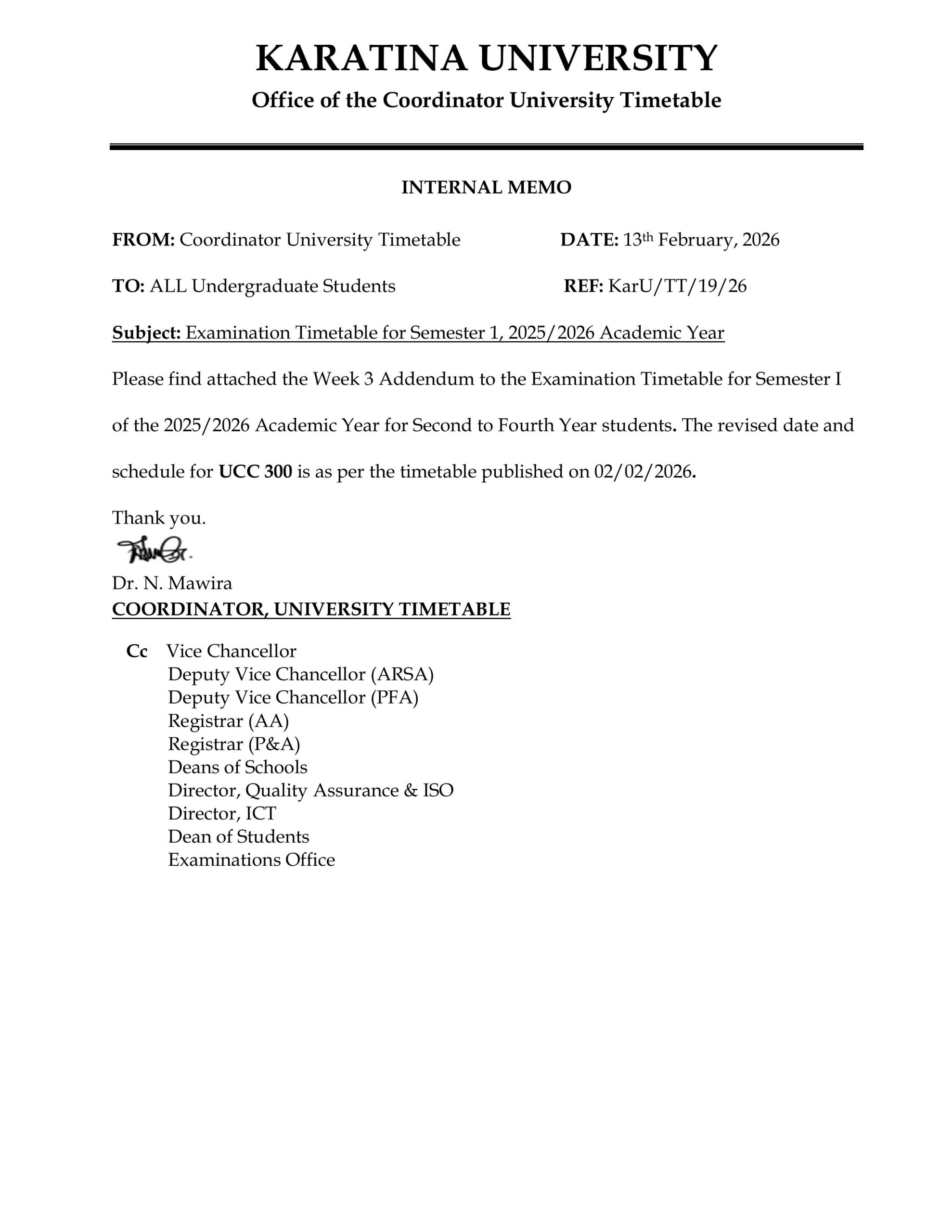 EXAMINATION TIMETABLE FOR SEMESTER 1, 2025/2026 ACADEMIC YEAR (WEEK 3 ADDENDUM)