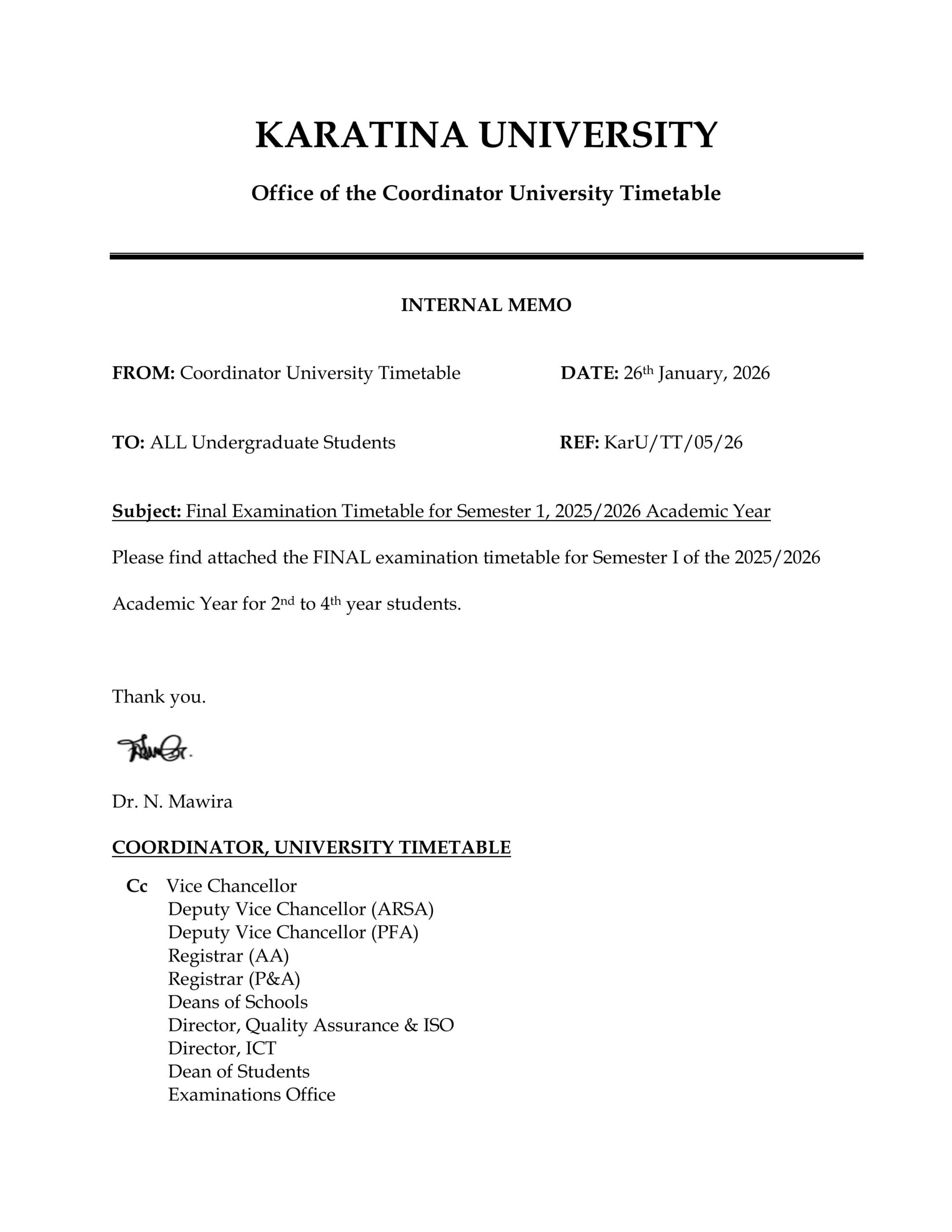 FINAL EXAMINATION TIMETABLE FOR SEMESTER 1, 2025/2026 ACADEMIC YEAR