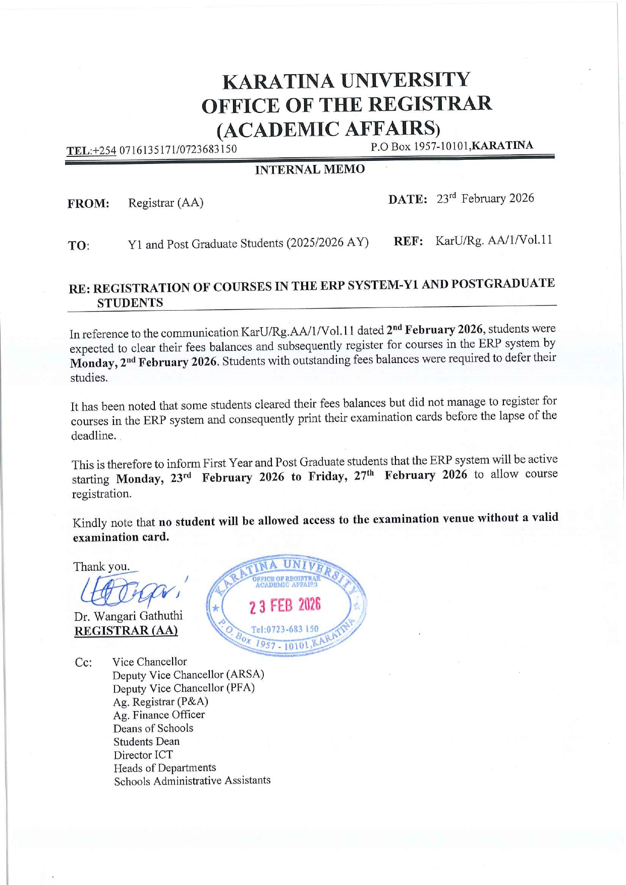 Karatina University News