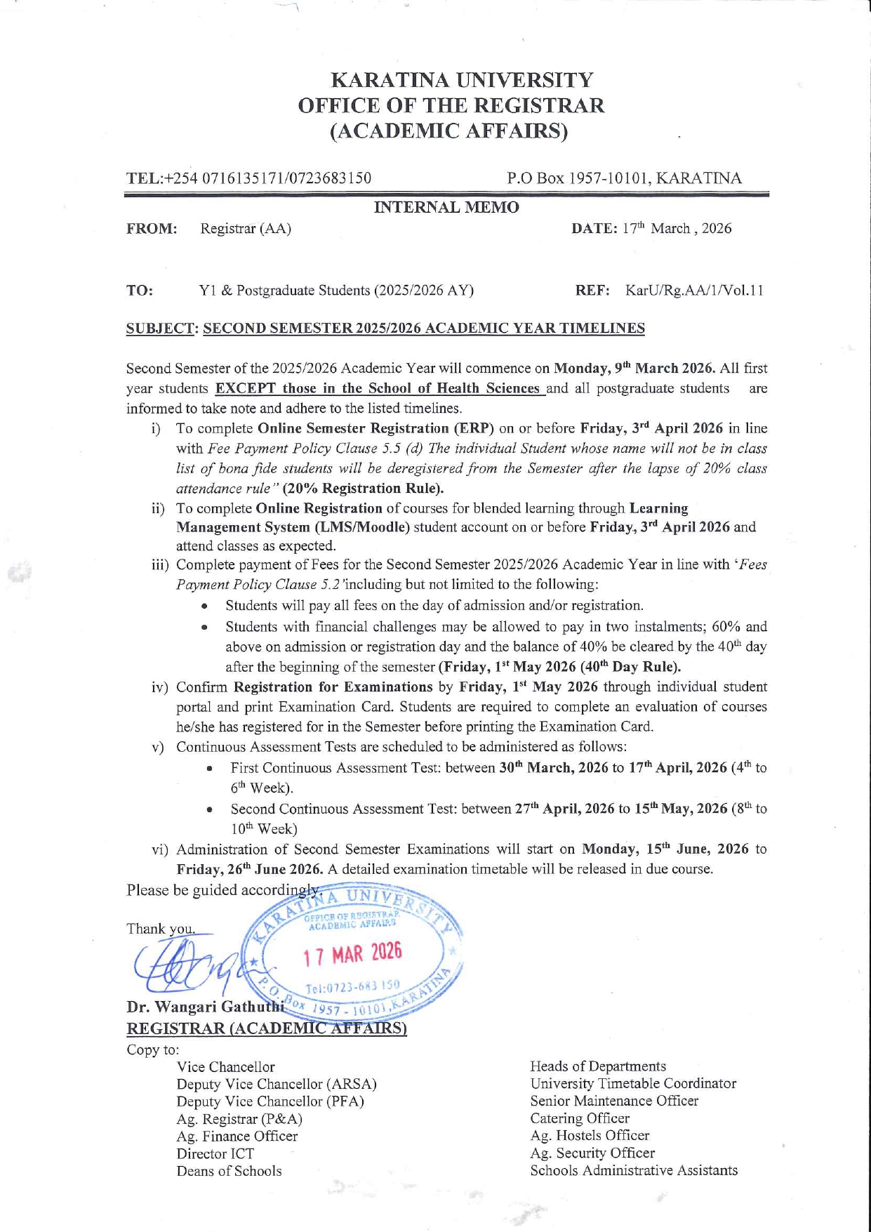 SECOND SEMESTER 2025/2026 ACADEMIC YEAR TIMELINES