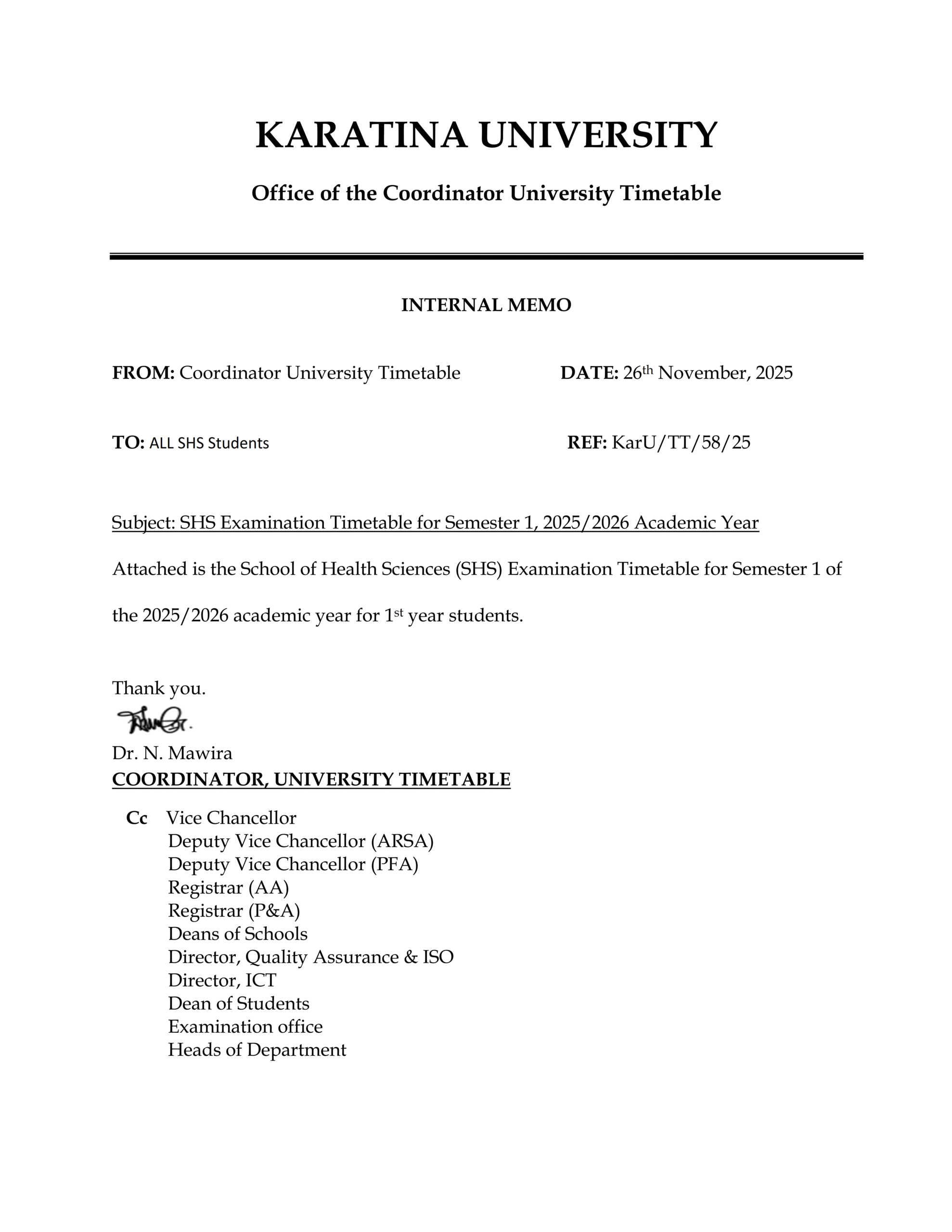 Download SHS Undergraduate EXAMINATION TIMETABLE - (Sem1 25/26) - Y1