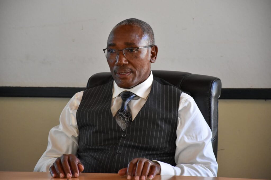 The Vice Chancellor Prof. Linus M. Gitonga addressing the faculty of Computer Science and informatics during the interactive session held at the Boardroom.